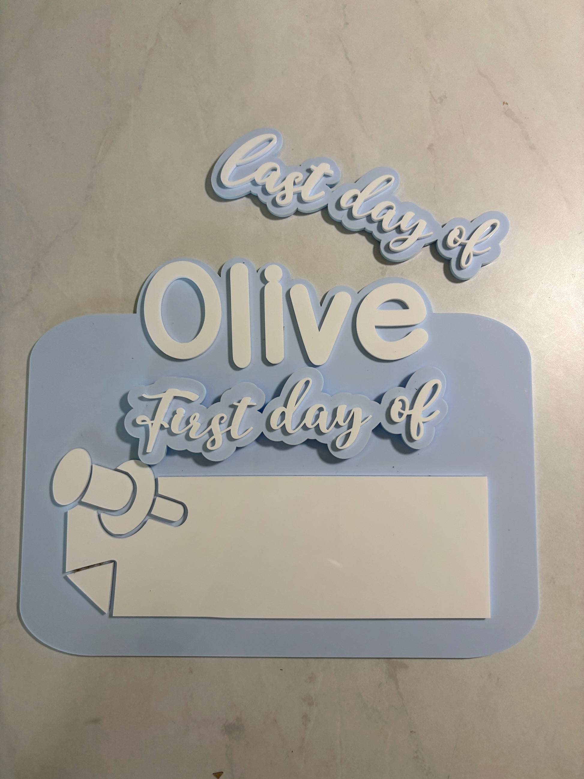 - Each order comes with one board interchangeable magnetic "first day of" "last day" of sign and black dry erase marker